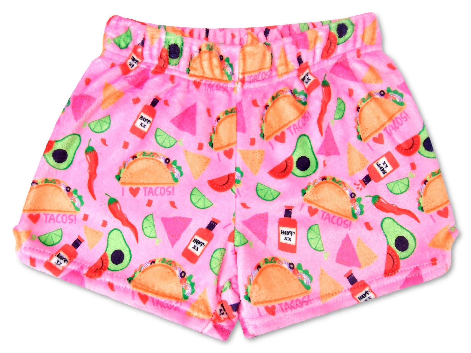 Iscream’s Taco Love Plush is a spring print sure to bring a blast of color to your store! Plush shorts are 100% polyester. back pocket. Fabric covered waistband. Machine washable